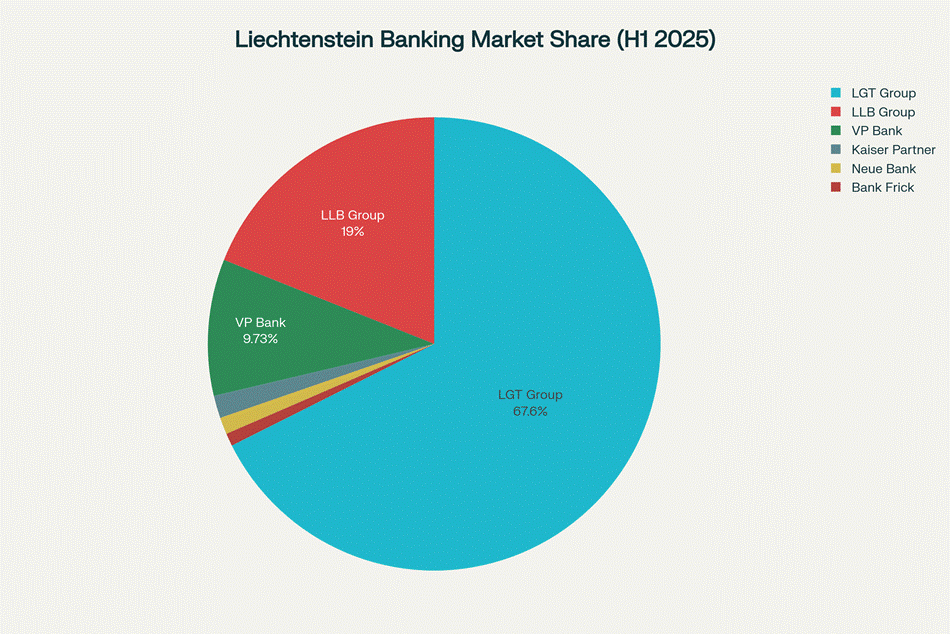 The Liechtenstein banking sector demonstrates significant concentration, with the top three institutions controlling the vast majority of assets under management. The market dynamics reveal a clear hierarchy of institutions serving different client segments and geographic markets.